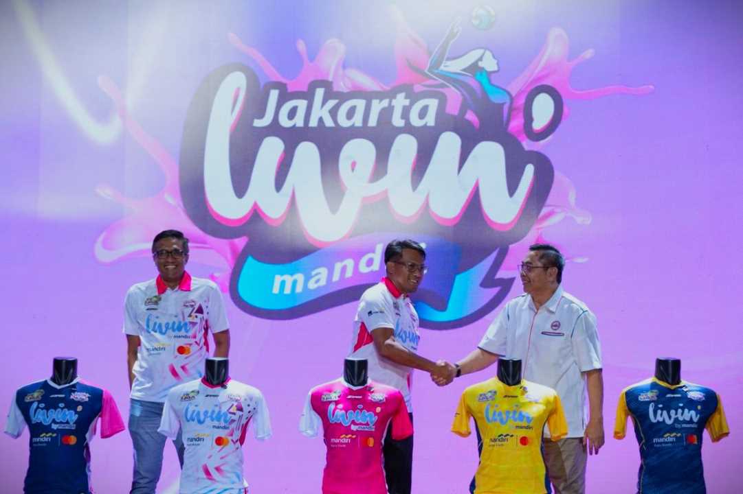 Foto: (Kiri – kanan) Managing Director of Mastercard, Wibawa Prasetyawan, Wadirut Bank Mandiri, Henry Panjaitan, dan Wasekjen PP PBVSI, Gilang Iskandar saat peluncuran skuad Jakarta Livin’ by Mandiri (JLM) 2026, Senin (5/1) di Jakarta.