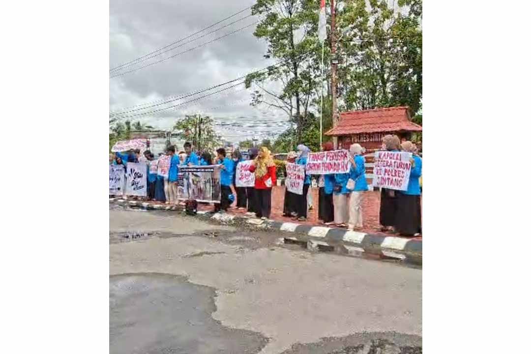 Foto: Massa menggelar orasi menyampaikan aspirasi di depan Mapolres Sintang.